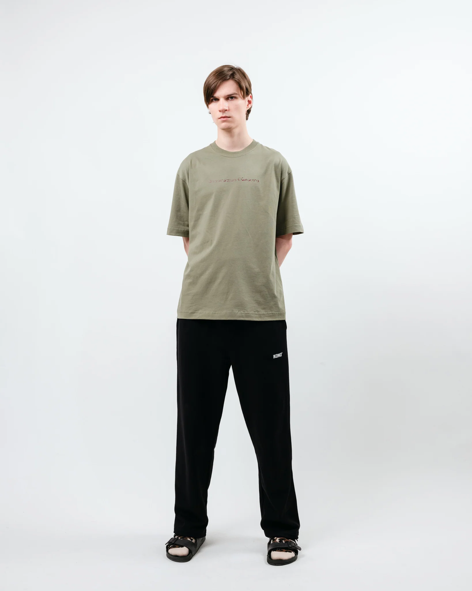 Black straight leg sweatpants with embroidered IKONOŸ logo